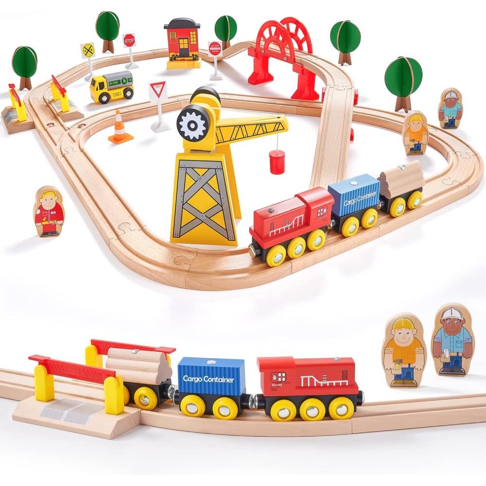 110PCS All-in-One Wooden Train Set Perfect for Family & Party Time: This 110-piece set comes with wooden train tracks, scenario building blocks, and puzzles.This large-scale train set is appropriate for children aged 3 to 8, allowing them to experiment with various assembly method and enjoy a range of play options while fostering teamwork for up to three children. It is also the finest option for a fun family time.