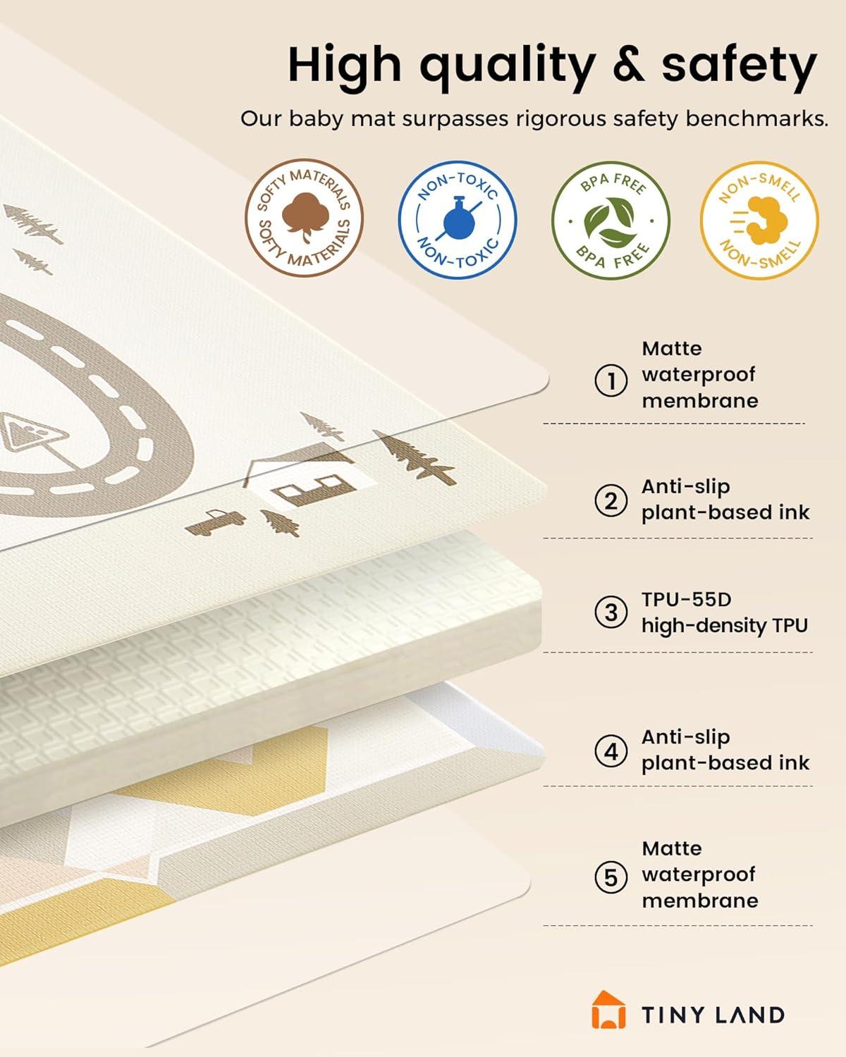 Helpful Tip: Tiny Land baby crawling mat is crafted from premium materials with exceptional resilience. Simply unfold the mat and allow it a moment to settle to ensure that the mat is flat. For quicker restoration, consider flipping it over.
