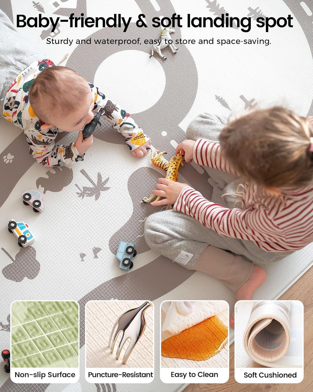 Tiny Land Baby Crawling Mat Reversible Baby Play Mat 78″ X 55″ Waterproof Non-Slip Larger Playmat Odorless Foam Floor Mat for Infants,Toddlers(Forest Wonders)(Modern Zoo Oasis)