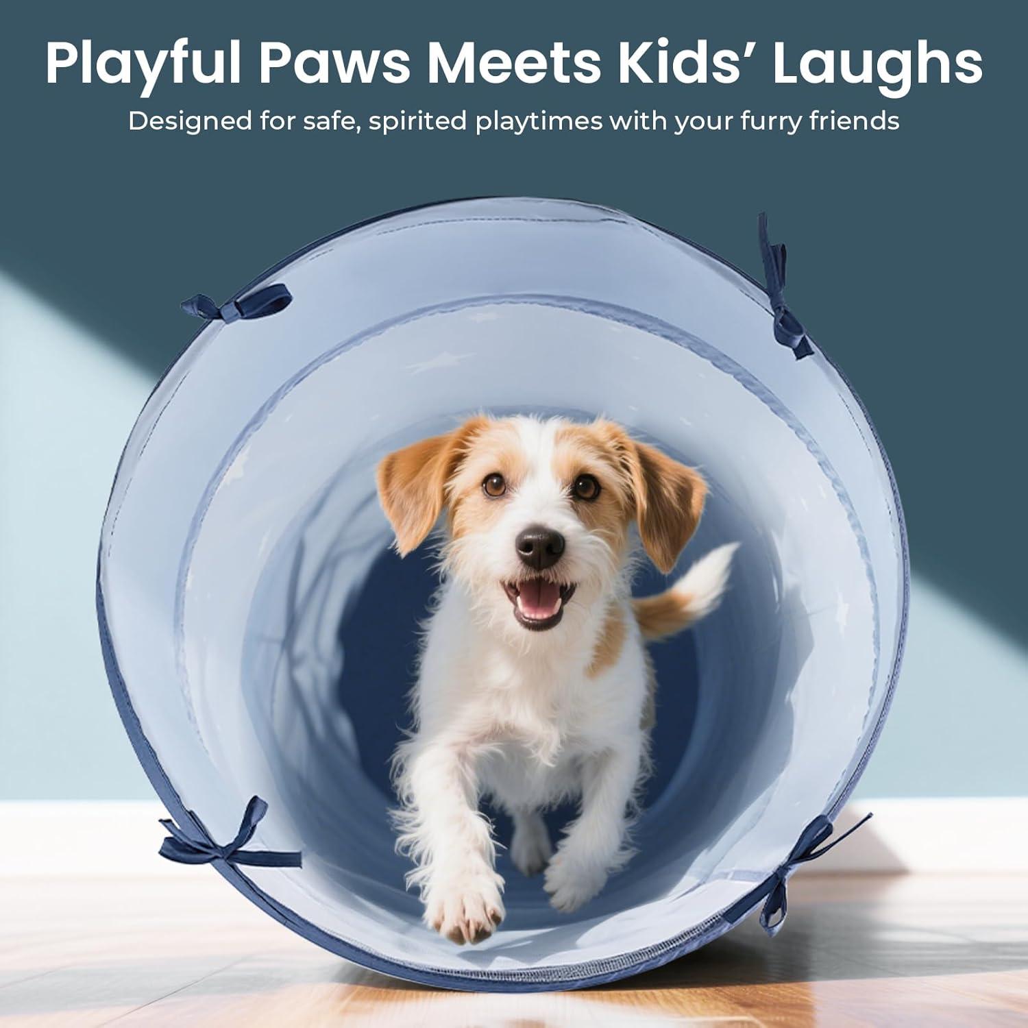 Ease of Use – This kid's tunnel features a steel spring-frame design, allowing you to quickly unfold it when needed so no playtime moments are wasted. It comes folded and you literally pop it open and it unfolds automatically. When playtime is over, the tent folds back into a compact form, making it simple to store away. Our product comes with a convenient portable carry bag, which is easy to fold and store, making it highly portable.