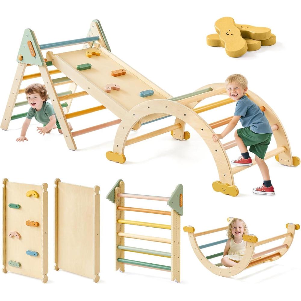 imageTiny Land Pikler Triangle Set7in1 Foldable Montessori Toddler Climbing Toys Indoor Wooden Playground Jungle Gym for Kids Climber Gift for Boys ampamp Girls Toddler Climbing Toys MorandiRainbow