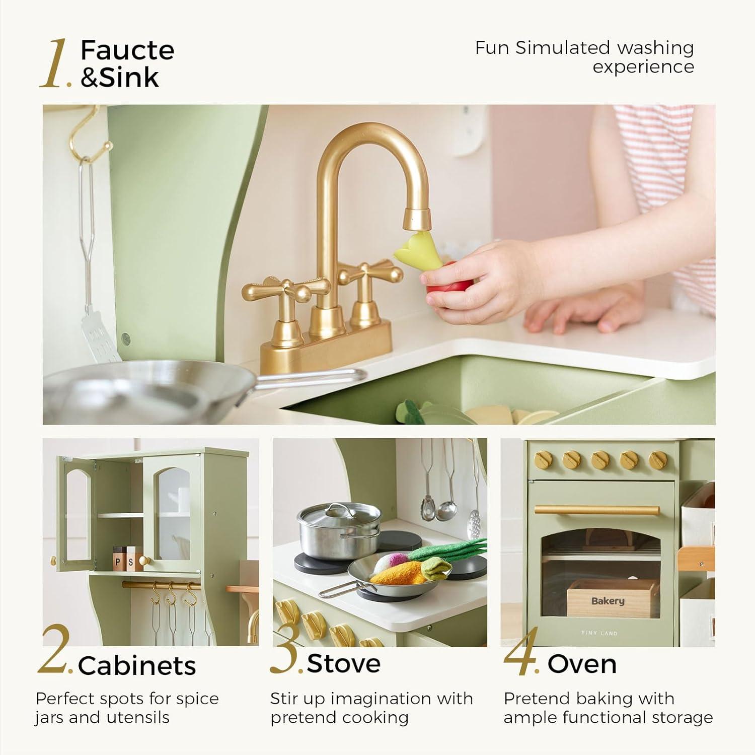 Tiny Land Play Kitchen for Kids, Wooden Toy Kitchen Set with Storage & Accessories, Toddler Kitchen Playset with Stove & Sink, Kids Kitchen Playset Gift for Ages 3-8(Green)