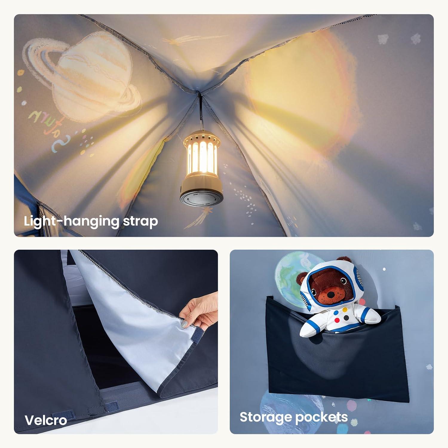 Tiny Land Space Galaxy Bed Tent for Kids – Sleep Bed Canopy with 9 Planets Design, Easy-to-Install Indoor Kids Play Tent, Imaginative Playhouse, Ideal Gift for Boys & Girls – 77″ x 40″ x 46″